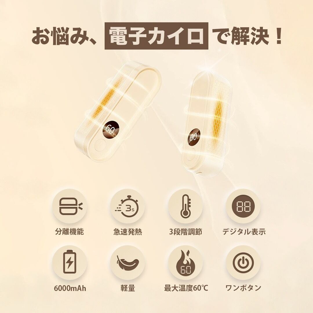 ・磁気分離式デザイン:2つのカイロを分けて使用可能。両手を均等に温められる新構造。
