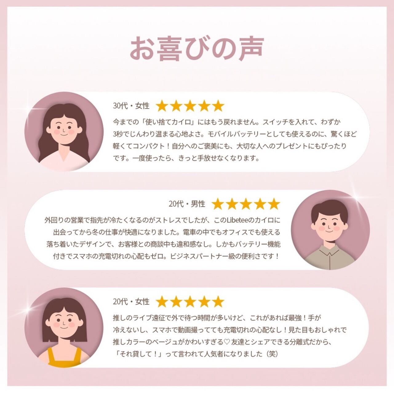 安全基準も日本基準】Libeteeの充電式カイロはPSE認証済みで、過熱防止や過充電防止の安全機能を搭載しています。過電流・過充電による故障や、温度の上がりすぎを心配する必要はありません。