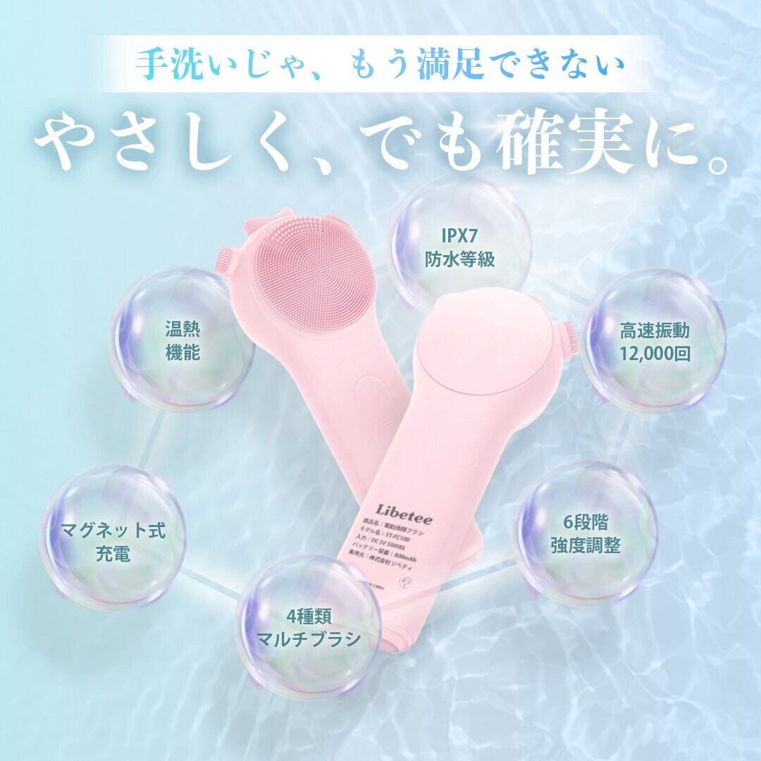 Libetee 電動洗顔ブラシは、【高速振動×温感モード】の贅沢Wアプローチで毛穴汚れや黒ずみ・角質をやさしく浮かせ、つるんとした透明感のある素肌へ導きます。