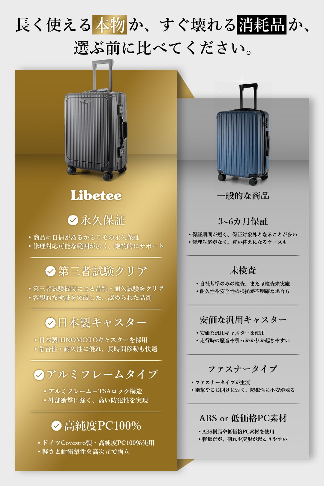 ・軽量で衝撃に強いPC樹脂100%を採用