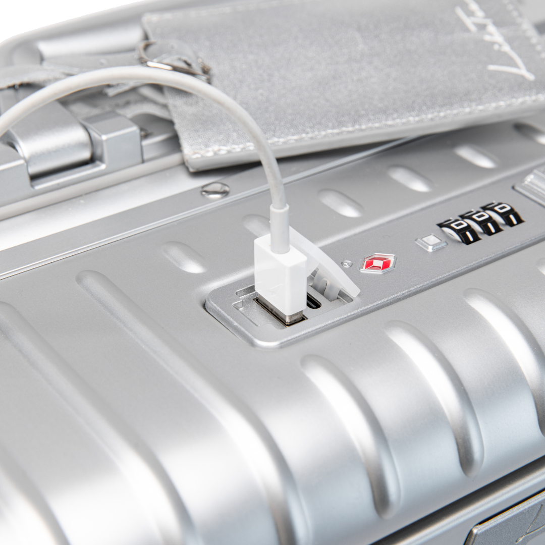 1.スーツケースの前面を開けて充電ケーブルを見つけてください。