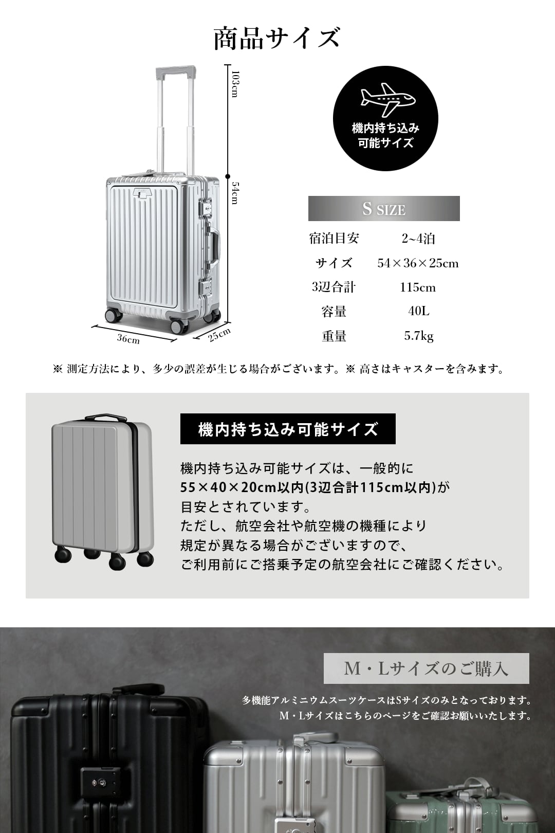 【永久保証】アルミニウム多機能スーツケース Sサイズ 20インチ