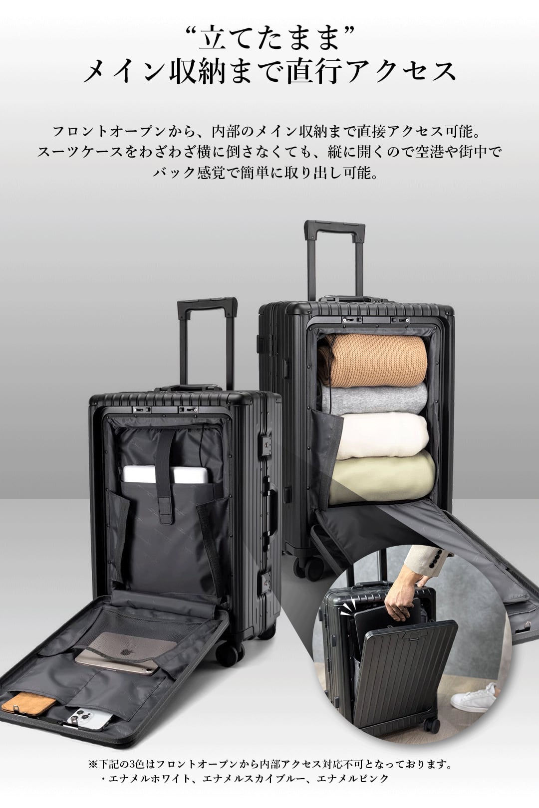 ・本スーツケースエナメルカラーはエナメル仕上げのためキズ等から守る目的で、保護フィルムを貼付しています。必要に応じて保護フィルムを剥がしてご使用ください。